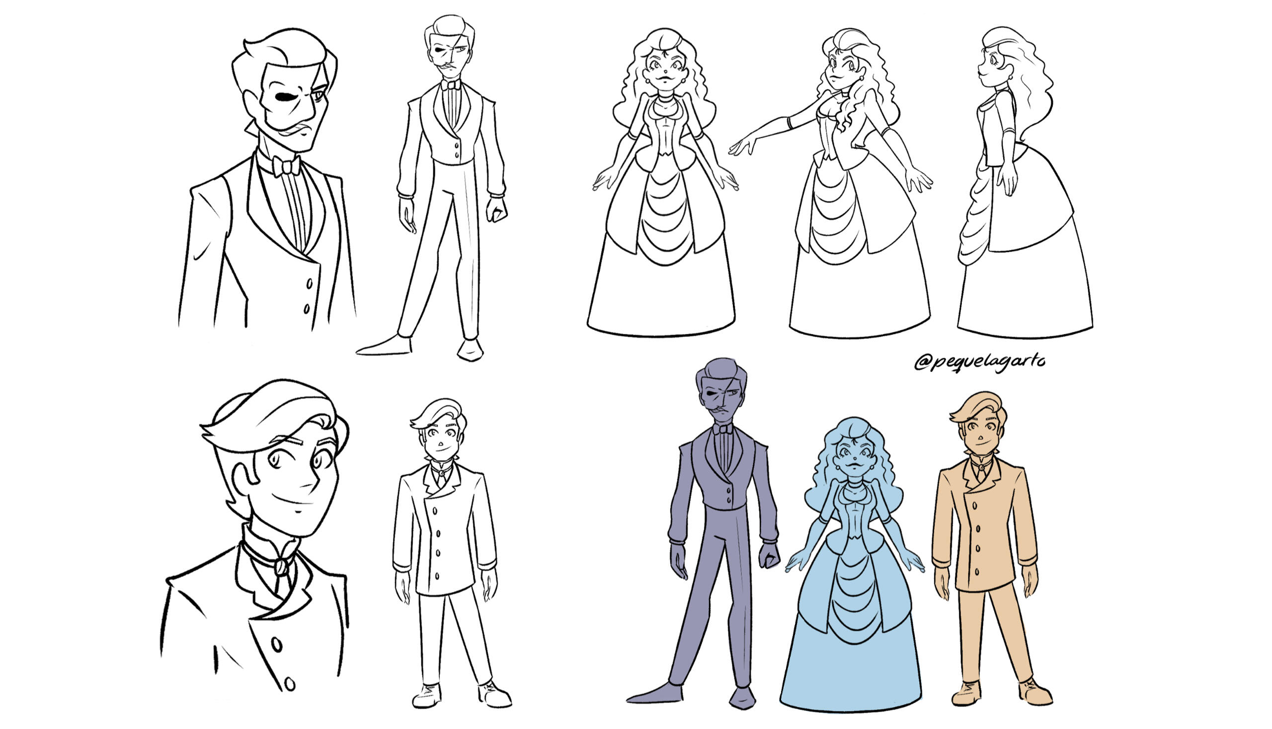 Thumbnails y primera versión de animatic para WIP personal basado en los personajes de Webtoon de Rachel Smythe