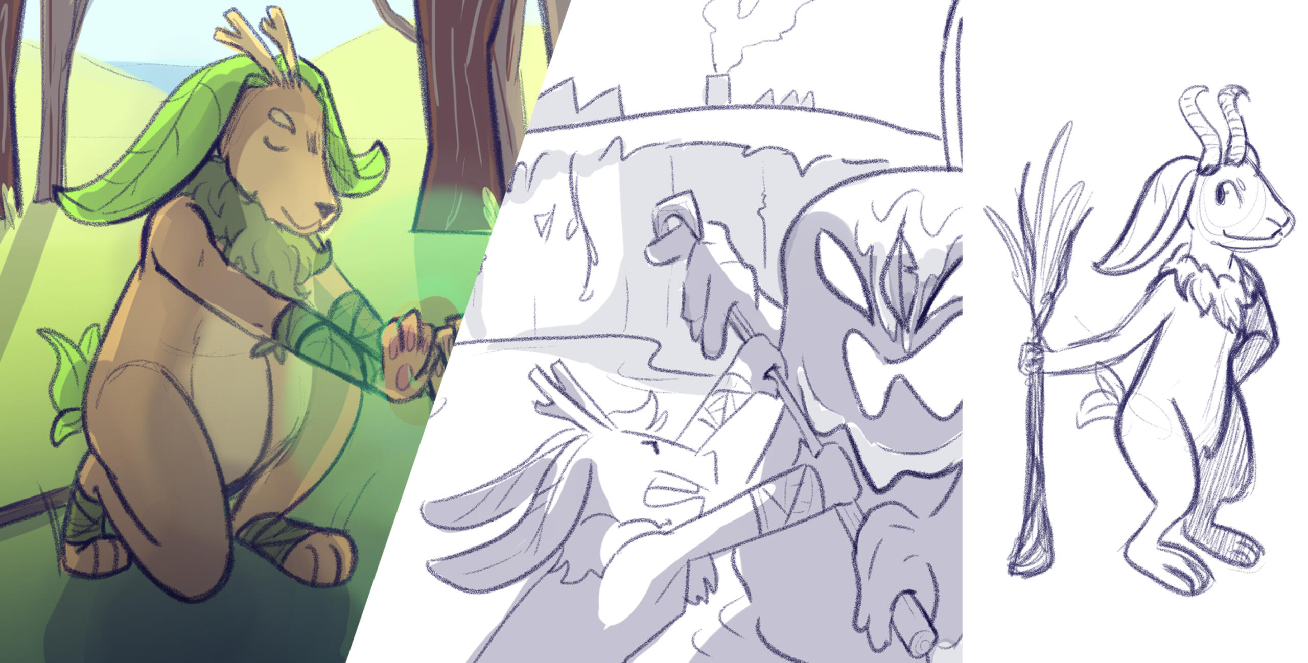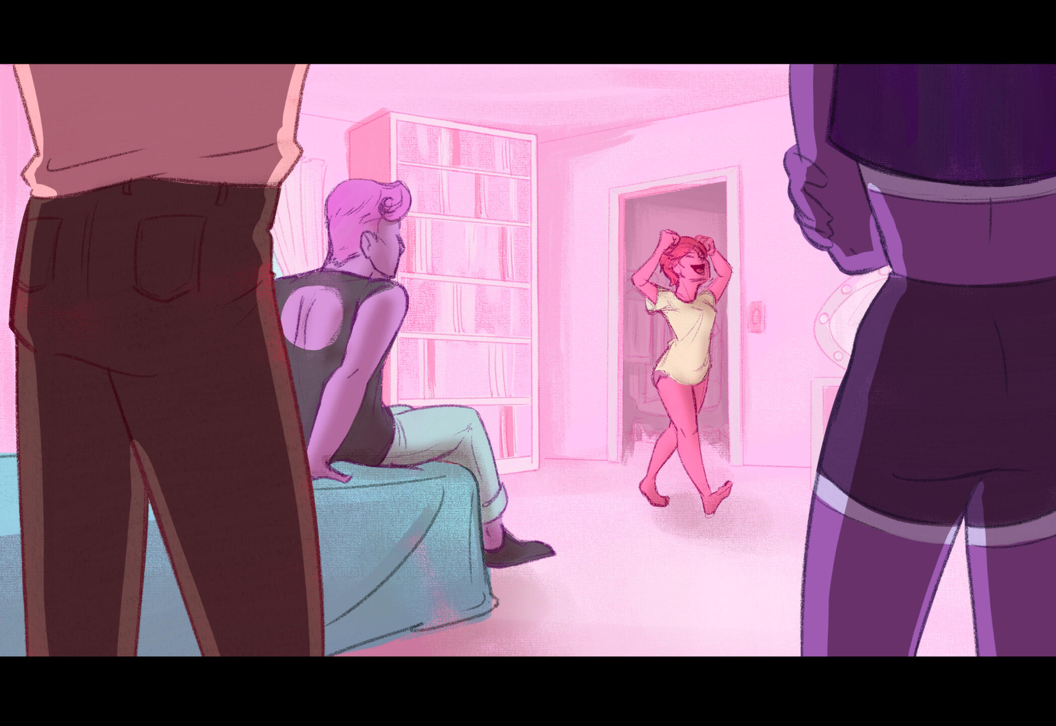 Thumbnails y primera versión de animatic para WIP personal basado en los personajes de Webtoon de Rachel Smythe